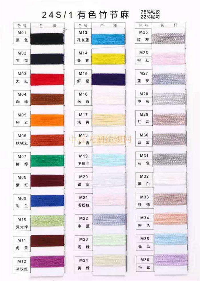 24N竹节麻 由78%粘胶 22%尼龙组成,是春夏毛织,针织首选产品,具有凉快,干爽,防辐射,防静电,防过敏,减少排汗的作用。